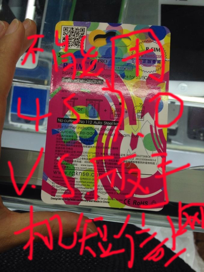 忠实的亲们注意了:最近市场出现了仿冒的R-SIM9 PRO,有些无良无耻商家进行恶意捣乱市场,其行为严重违法,我们将采取证据依法打击!其仿冒线路板为黄色,包装上无防伪查询验证码,程序中只有3个模式,不能使用4S,V版,S版的7.x短信及上网,不能使用日本DOCOMO运营商,没有任何质量及保修可言,该仿冒集团主要据点在广州,严重损害我公司产品形象及利益!将依据法律上报与工商局及中国知识产权局进行查处!请客户们购买时分辨购买,以免上当!防伪查询